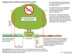 - Der seitliche Rückschnitt an Knickgehölzen ist nur alle 3 Jahre im Abstand von 1 m vom Knickwallfuß zulässig.