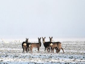 Jäger füttern Pflanzenfresser wie Rehe oder Hirsche nur, wenn die Behörde bei ganz speziellen Witterungsverhältnissen eine Notzeit ausruft. Artgerechtes Futter ist beispielsweise Heu. Anpassungsfähige Allesfresser wie Wildschwein, Fuchs oder Waschbär finden selbst im Winter ausreichend natürliche Nahrung. Essensreste hingegen locken die Tiere in menschliche Siedlungen, wo sie in Haus und Garten Schäden verursachen oder an verdorbenen Lebensmitteln erkranken können. Deshalb sollten Rest- und Biomüll für Wildtiere unzugänglich sein.