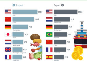 Deutschland ist eine der führenden Handelsnationen im Agrarbereich. Sowohl bei den Importen als auch bei den Exporten landet Deutschland weltweit auf Rang 3. Auffällig ist, dass die vergleichsweise kleinen Niederlande zweitgrößter Exporteur weltweit sind und wertmäßig rund 30 Prozent mehr Agrargüter exportieren als das um ein Vielfaches größere China.