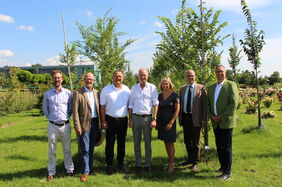 Sie eröffneten die Florum 2023: Jan-Peter Beese, Leiter der Abteilung Gartenbau (LKSH), Axel Huckfeldt, Vorstand Bund deutscher Baumschulen (BdB SH), Dr. Frank Schoppa, Geschäftsführer des BdB SH und der Florum, Wetterexperte Sven Plöger, Präsidentin der Landwirtschaftskammer, Ute Volquardsen, Landwirtschaftsminister Werner Schwarz, und Präsident des BdB auf Bundesebene, Hajo Hinrichs (v. li.)