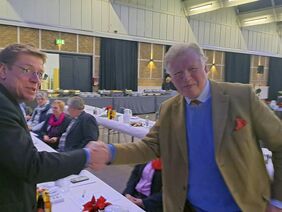 Vizepräsident Hans-Caspar Graf zu Rantzau wurde bei einer Enthaltung mit überragender Mehrheit wiedergewählt. Kammergeschäftsfüher Dr. Klaus Drescher war unter den ersten Gratulanten.