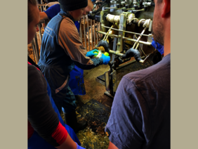 Der Kurs besteht aus Theorie-Einheiten wie z.B. Anatomie, Klauenerkrankungen und Management, sowie aus Praxis-Einheiten an Totklauen und im Stall zur funktionellen Klauenpflege nach dem 5-Punkte-Schema, Klötze kleben, Verbände anlegen und Werkzeugkunde.