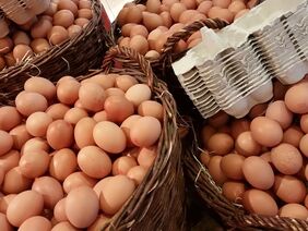 Obwohl die Werte von Jahr zu Jahr stark schwanken, ist eine deutliche Tendenz erkennbar. Bei Eiern etwa lag der Anteil in den achtziger Jahren nie unter 70 Prozent, 2020 belief er sich nur noch auf 41 Prozent.