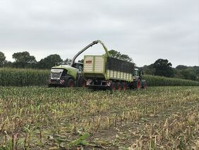 Bei der Einlagerung ins Fahrsilo wird der gehäckselte Mais in dünnen Schichten von maximal 20 cm verteilt und mittels mehrfacher Überfahrten festgewalzt. Je nach Bergeleistung der Häckselkette sind dazu auch mehrere Walzfahrzeuge mit einem hohen Gewicht erforderlich, um das Erntegut soweit wie möglich zu verdichten. Denn je kleiner die luftgefüllten Poren zwischen den Partikeln sind, desto schneller ist der Sauerstoff veratmet und die Silierung kann beginnen. Wobei eine optimale Verdichtung nach Siloöffnung viel wichtiger ist, um die Eindringtriefe der Luft in den Silostock zu begrenzen.