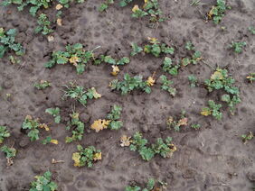 (siehe Foto). Schlechte Auflaufbedingungen, gefolgt von Staunässe und damit einhergehenden Sauerstoffmangel durch die extremen Niederschlagsmengen ab Oktober haben dem Raps besonders auf den schweren Standorten sowie den verschlämmungsgefährdeten Flächen zugesetzt. Eine Umbruchentscheidung sollte aber nicht vorschnell getroffen werden.