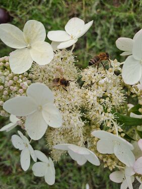 An den fertilen Blüten erfreuen sich auch die Bienen zu Hauf.