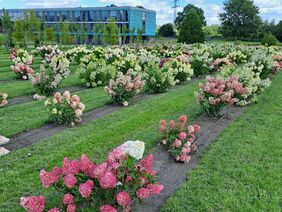 Rispenhortensien im Gartenbauzentrum Ellerhoop im Rahmen der Prüfung der EURO-Trial Arbeitsgruppe.