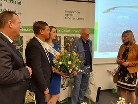 Kammerpräsidentin Ute Volquardsen dankte für die langjährige gute Zusammenarbeit mit ausgezeichneten Produkten aus Schleswig-Holstein, darunter auch „Zierpflanzen aus der Region im Norden gewachsen“ mit dem Gütezeichen der Landwirtschaftskammer ausgezeichnet.