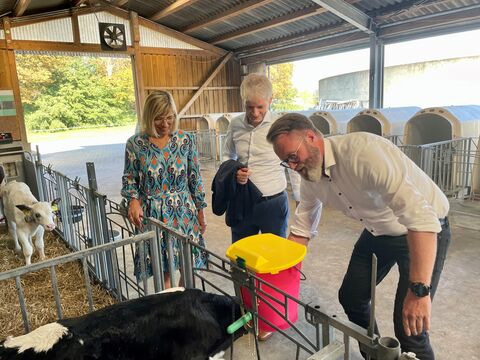 Prominenten und sichtlich kuhbegeisterten Besuch hatten die Futterkamper Kühe jetzt von Wirtschaftsminister Claus Ruhe Madsen (re.) und WTSH-Chef…