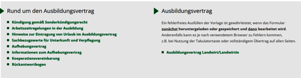 Ausbildungsvertragsvordruck und weitere wichtige Informationen: