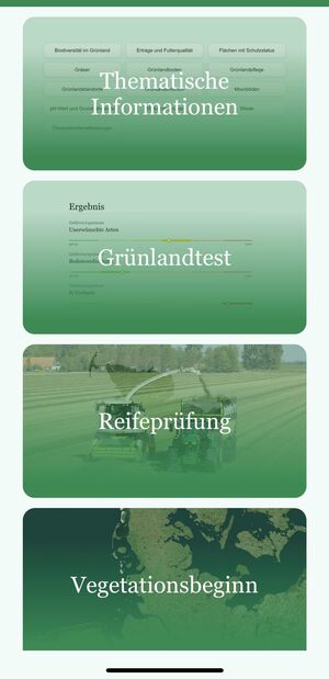Die App „Grünlandportal Schleswig-Holstein“ wurde in Kooperationsarbeit zwischen der Landwirtschaftskammer Schleswig-Holstein, der Fachhochschule Kiel und der Christian-Albrechts-Universität zu Kiel entwickelt. Die mobile App kann in den gängigen App-Stores kostenlos heruntergeladen werden. Die Desktopversion ist unter www.gruenlandportal-sh.de zu finden.