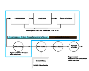 Reinigungsplätze sind geschlossene Systeme. Sie müssen der unsachgemäßen Gerätereinigung vorbeugen und so Punkteinträge in die Kanalisation, die Oberflächengewässer und das Grundwasser verhindern. Die Außenreinigung von Pflanzenschutzgeräten ist auf der Anwendungsfläche in vielen Fällen nicht ohne weiteres durchzuführen.