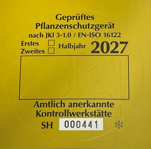 Die täglichen Herausforderungen für das Material machen eine regelmäßige Prüfung vor Inbetriebnahme und auch während des Betriebes nötig. Darüber hinaus hat der Gesetzgeber geregelt, dass in Gebrauch befindliche Pflanzenschutzgeräte regelmäßig in einer amtlich anerkannten Kontrollstelle überprüft werden müssen. Gemeint ist die Pflichtkontrolle für Pflanzenschutzgeräte. In der Verordnung über die Prüfung von Pflanzenschutzgeräten – „Pflanzenschutzgeräteverordnung“ – ist festgelegt, dass Verfügungsberechtigte und Besitzer ihre prüfpflichtigen Pflanzenschutzgeräte in Zeitabständen von 6 Kalenderhalbjahren prüfen lassen müssen.