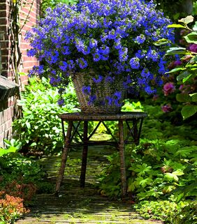 Die Blume gehört zur Gattung der Fächerblumen und ist bienenfreundlich. Wer sie pflanzt, kann nektarsaugenden Insekten wie Biene, Schmetterlingen und Co. daher im Garten auch noch etwas Gutes tun. Das „Blauröckchen“ besticht mit seinen luftig gefächerten Blüten an langen, eleganten Zweigen. Es blüht den ganzen Sommer hindurch. Besonders geeignet ist es für Balkonkästen, Ampeln und hohe Behälter, bei denen die Zweige über den Behälterrand fließen können. Seine Zweige werden 20 bis 30 Zentimeter lang. Damit die Pflanze toll blüht, braucht sie ein sonniges Plätzchen, aber auch mit Halbschatten kommt sie zurecht. Gießen nicht vergessen! Das „Blauröckchen“ hat wegen seiner Blütenpracht einen recht hohen Wasserbedarf. Ein Rückschnitt oder Ausputzen ist nicht erforderlich.