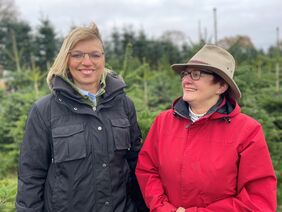 Die Präsidentin der Landwirtschaftskammer Ute Volquardsen ist privat ein riesiger Weihnachtsfan. Dienstlich unterstützt die Kammer mit dem sogenannten Weihnachtsbaum-Kompetenzzentrum die Betriebe. Es bietet den Weihnachtsbaumproduzenten eine hervorragende Beratungsplattform. „Wir bündeln das Beratungsangebot abteilungsübergreifend, sodass in jedem Einzelfall optimale und maßgeschneiderte Lösungen für die jeweils speziellen Fragestellungen der Betriebe entwickelt werden. Mit dem Weihnachtsbaum-Kompetenzzentrum erhalten wir die Leistungsfähigkeit unserer Erzeuger und gewährleisten somit die hohe Qualität der heimischen Weihnachtsbäume. Und davon profitiert letztlich der Verbraucher, der für sein Geld hochwertige Ware erhält und deren Produktion die aktuellen gesellschaftlichen Ansprüche voll erfüllt - von hoher ästhetischer Qualität über Klimabilanz und Biodiversität bis zur Minimierung von Chemieeinsatz. Das Versuchswesens im Gartenbau unterstützt das Zentrum durch die Auftragsforschung rund um die Weihnachtsbaumproduktion. Unsere Experten beraten die Betriebe gern“, sagte Ute Volquardsen anlässlich des Fototermins in der Weihnachtsbaumkultur.