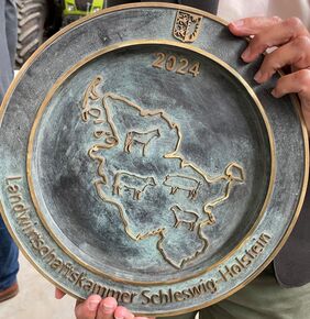 Die heute ausgezeichneten Betriebe sind sehr unterschiedlich aber es verbindet sie die Hingabe für ihre Tiere. Beide zeigen, dass bereits kleine Maßnahmen große Wirkung erzielen können, sagte Volquardsen bei der Verleihung des schweren Bronzetellers und der Urkunde. Der Preis wird von der LKSH seit Jahrzehnten einmal im Jahr vergeben und extra für den heutigen Tag ist sein Design generalüberholt worden.