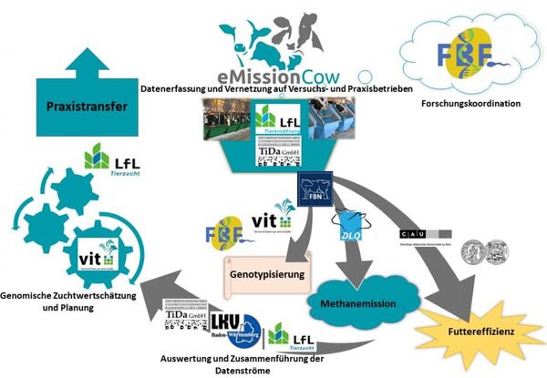 Das übergeordnete Projektziel ist die Zucht auf Futteraufnahme, Futtereffizienz und verminderte Methanemissionen in den deutschen Rinderpopulationen. Ein wesentlicher Grundstein sind hier die präzisen, einzeltierbezogenen Daten aus den Versuchsbetrieben. In den 13 deutschen Lehr- und Versuchsbetrieben stehen rund 900 Kühe mit Zugang zu Wiegetrögen (Holstein, Fleckvieh und Braunvieh). Durch diese differenzierte Phänotypisierung soll die Erarbeitung von Grundlagen zu effizienzorientierten Zuchtstrategien (Anpaarung und Zuchtauswahl) erfolgen. Für die Etablierung einer Zuchtwertschätzung muss jedoch eine größere Datenbasis mit höherer Tierzahl geschaffen werden.
