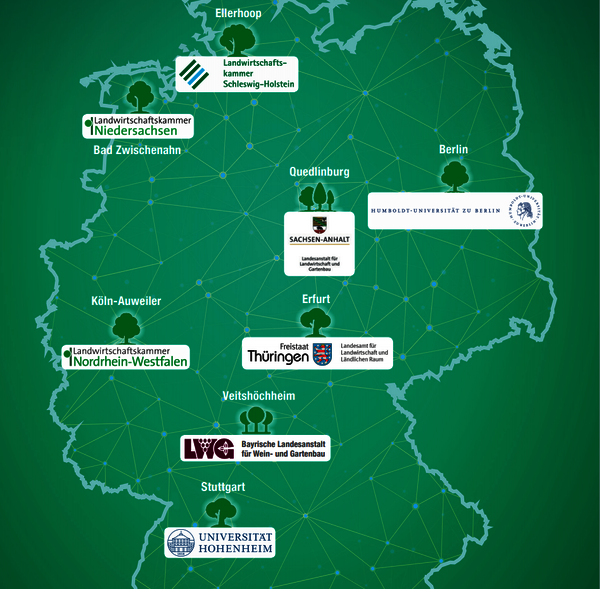 Hier ist das Kompetenzzentrum einer von 14 bundesweiten Prüfstandorten, an dem gegenwärtig 3 Sortimente (Ilex, Mahonien, Wisterien) auf ihre Qualität geprüft werden. Die bundesweite Koordination des Arbeitskreises Bundesgehölzsichtung erfolgt durch Dr. Andreas Wrede, Landwirtschaftskammer (Kontaktdaten siehe unten).